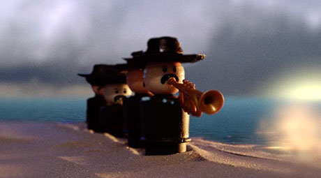 Fyra nedstämda män i sombreros spelar requiem tyst på trumpet