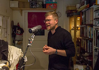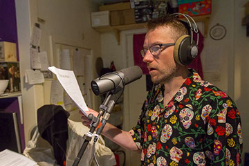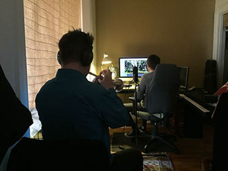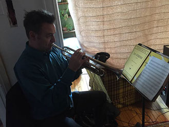 Gordon Allen neiling the trumpet solo in Craig Dionne's studio.